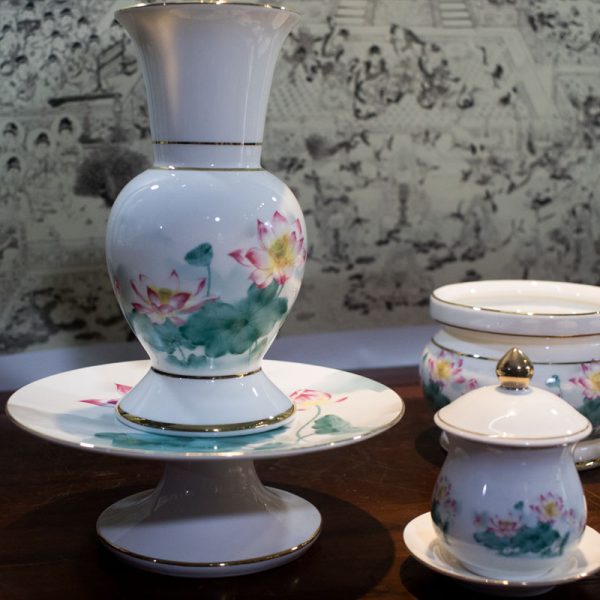 Cúng hoa trước tượng Phật tượng trưng cho việc tu nhân. Thế gian hay Phật pháp đều không rời nhân quả, đều dựa trên nền tảng của nhân quả. Đa số các loại hoa cùng có chung mục đích, đó là tỏa ra hương thơm. Thấy hoa, chúng ta nghĩ ngay đến việc phải tu nhân thiện, bằng những việc làm có ích cho mọi người, mọi loài. Có thế, tương lai chúng ta mới gặt hái quả tươi tốt. Trong cuộc sống hằng ngày, khi ứng xử, giao tiếp với mọi người. Ta cần phải tỏa ra hương thơm của đức hạnh, phẩm chất, làm tấm gương sáng cho người noi theo. Bộ Đồ Thờ Cúng Bằng Sứ